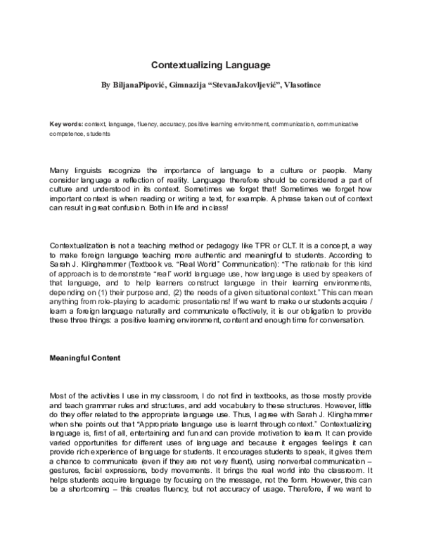 (PDF) Contextualizing Instruction for English Language Learners With ...