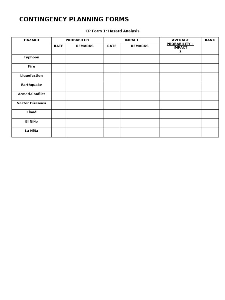 Contingency Planning Forms | PDF | Hazards | Improvised Explosive Device