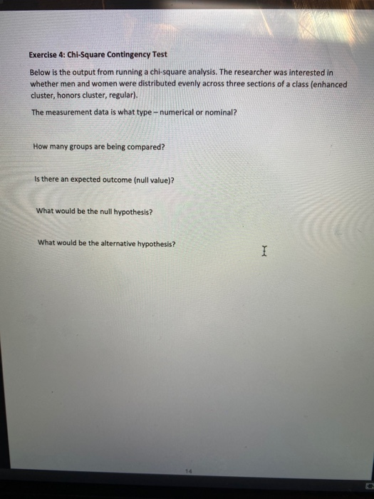 Solved Exercise 4: Chi-Square Contingency Test Below is the | Chegg.com