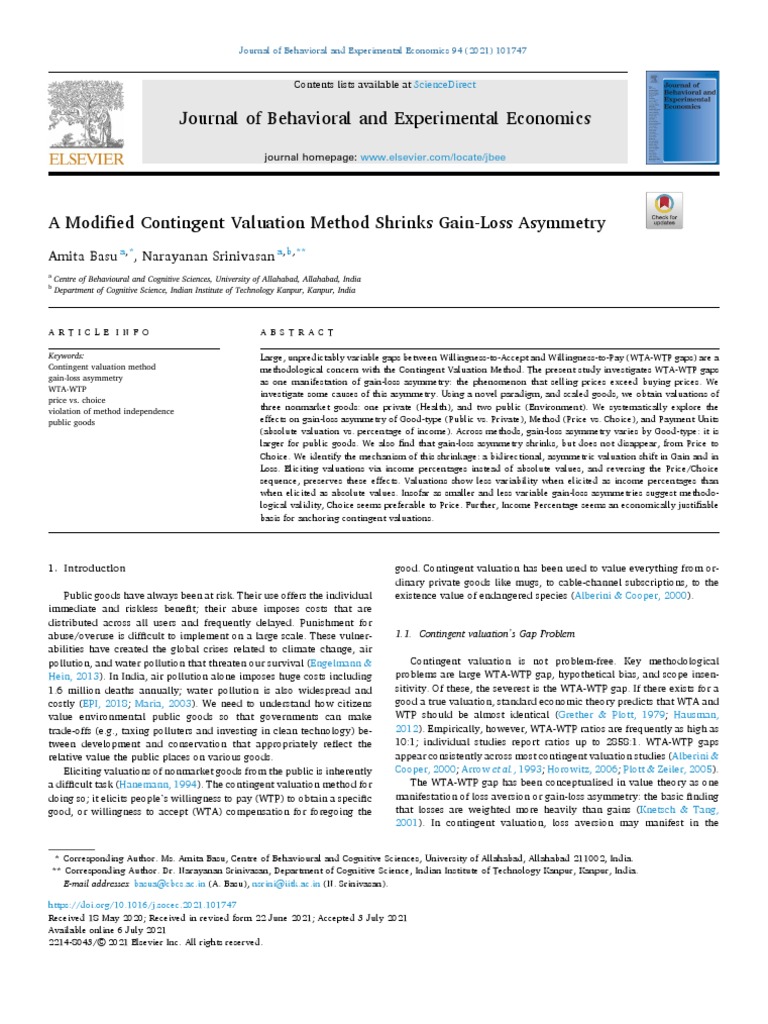 A Modified Contingent Valuation Method Shrinks Gain-Loss Asymmetry ...