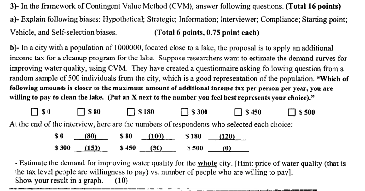 Solved 3)- In the framework of Contingent Value Method | Chegg.com