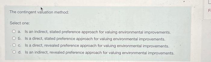 Solved The contingent valuation method: Select one: a. Is an | Chegg.com
