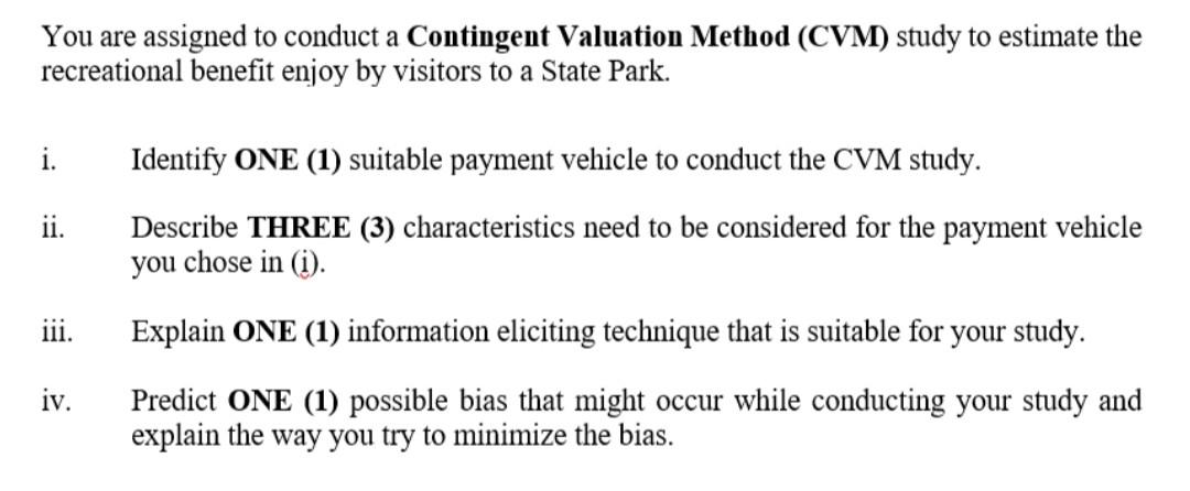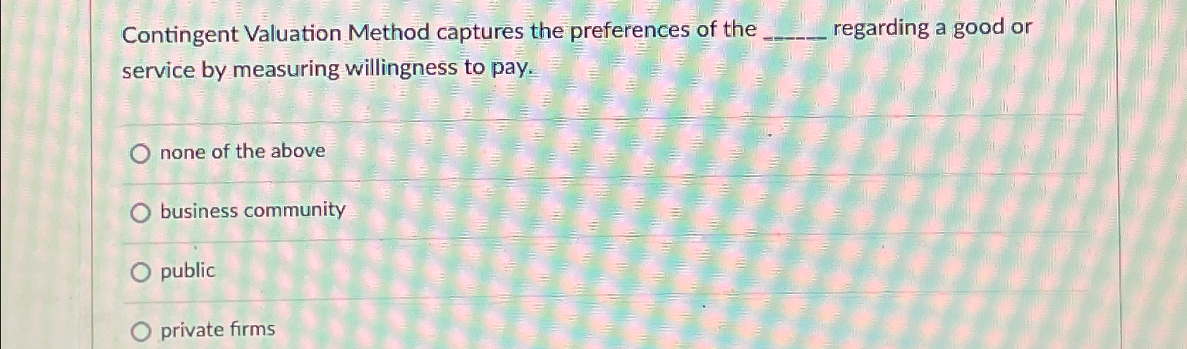 Solved Contingent Valuation Method captures the preferences | Chegg.com