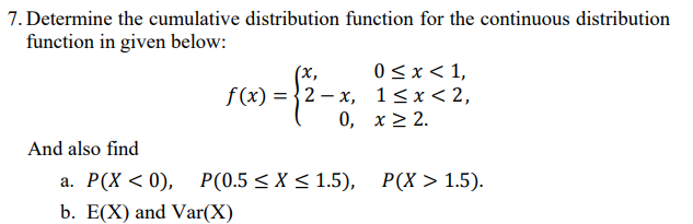 Solved 7. Determine the cumulative distribution function for | Chegg.com