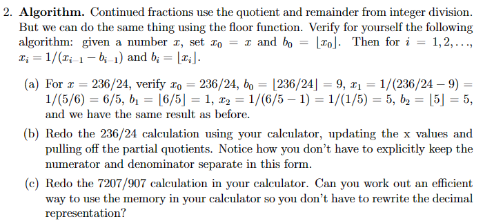 Solved Algorithm. Continued fractions use the quotient and | Chegg.com