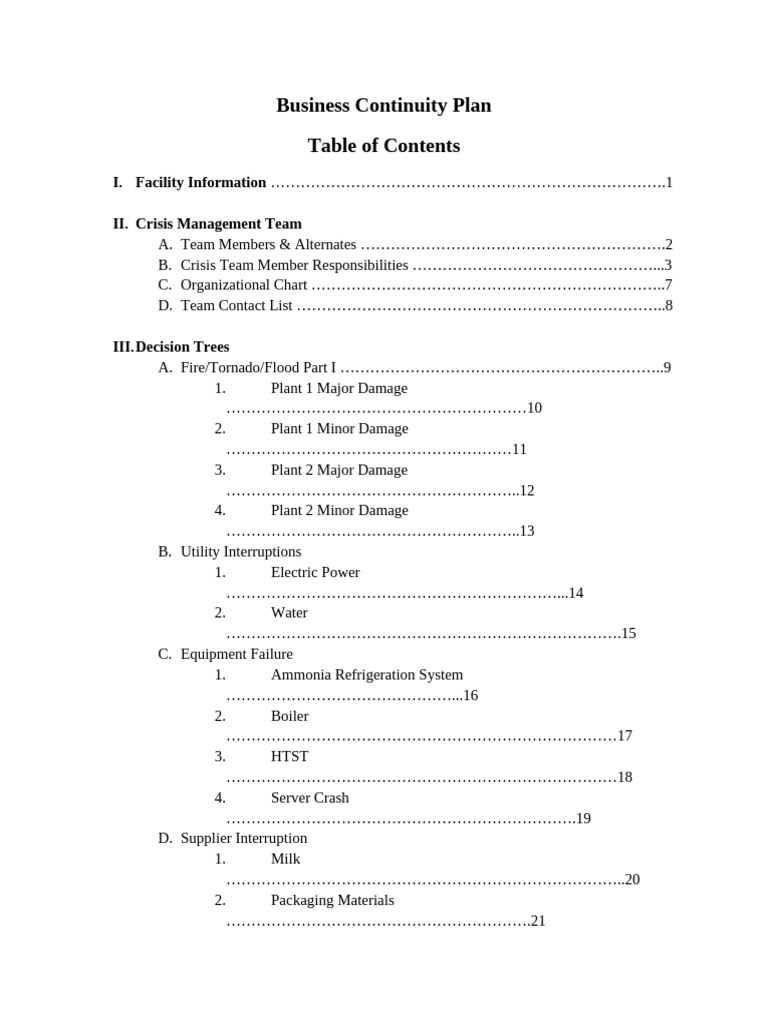 Sample Table of Contents for a Business Continuity Plan.doc - Sample ...