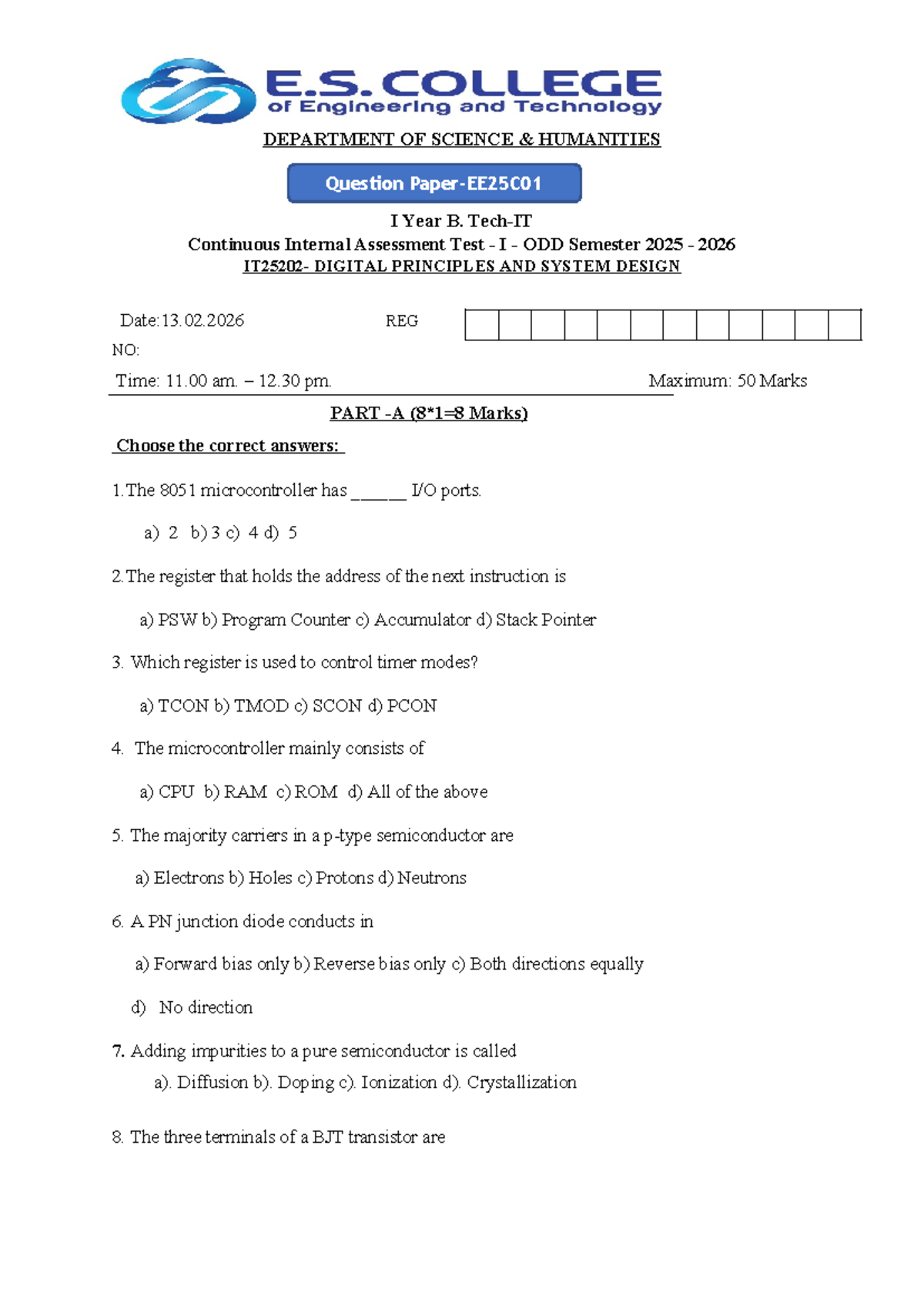 IA2 BEEE-CSE Continuous Internal Assessment Test I - ODD Sem 2025-26 ...