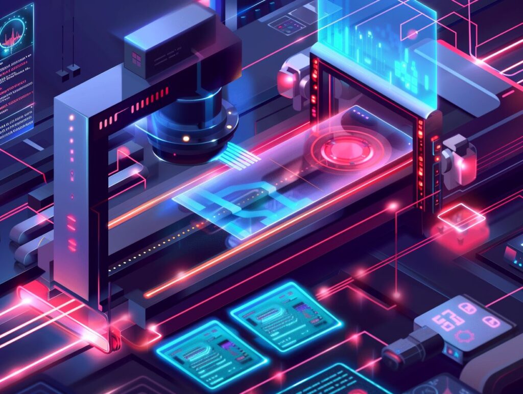 3d Isometric Magnifying Glass Scanning Database Server on Computer Chip ...