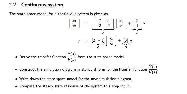 2.2 Continuous system The state space model for a continuous system is ...