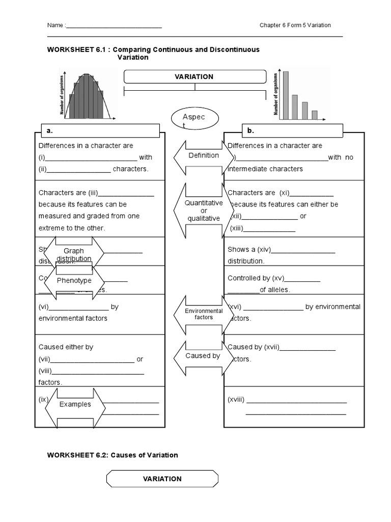 WORKSHEET 6.1: Comparing Continuous and Discontinuous Variation ...