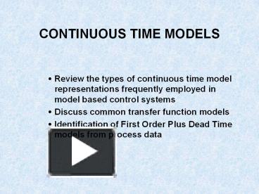 Continuous-Time Models: Mathematical Formulations and Analysis | Course ...