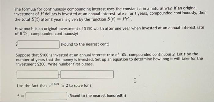 Solved Use the continuously compound formula, A=Pe'', to | Chegg.com