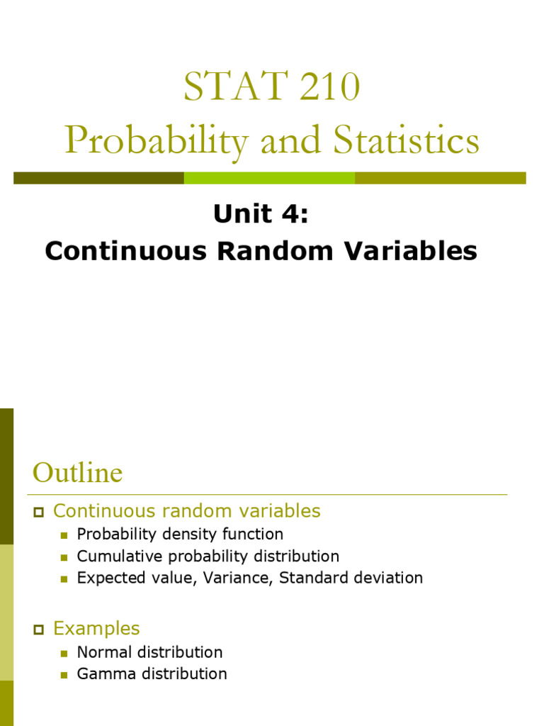 Unit 4 - Continuous Random Variables | PDF | Probability Density ...