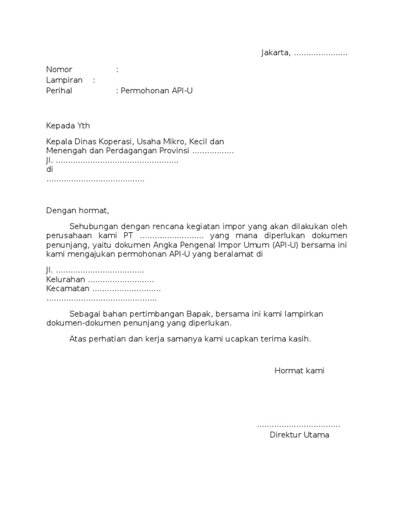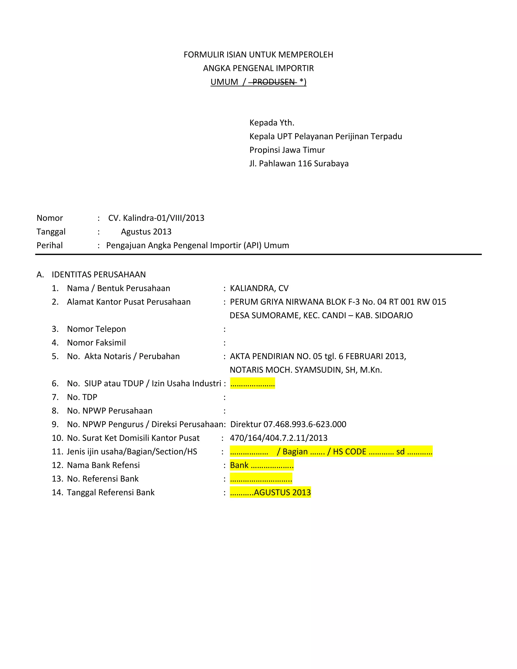 Form Permohonan Angka Pengenal Import (API) | PDF