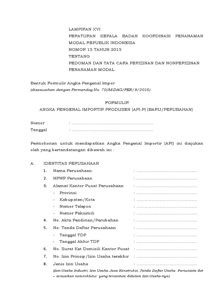 Formulir Permohonan Angka Pengenal Importir Produsen (API-P) | PDF