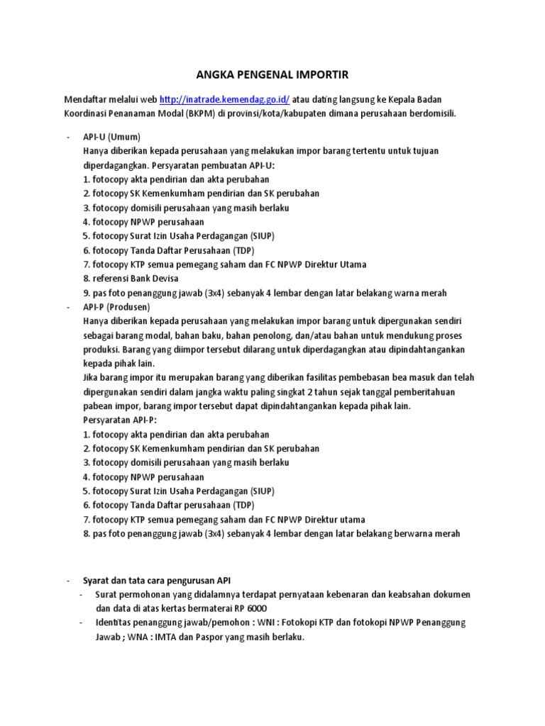 Angka Pengenal Importir: Syarat Dan Tata Cara Pengurusan API | PDF