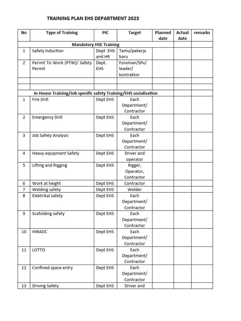 Contoh Training Program | PDF | Occupational Safety And Health | Safety