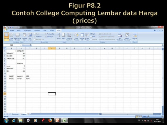 Proyek 8 spreadsheet dengan penyimpan data contoh college computing | PPTX