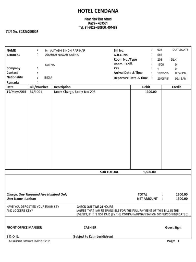 Contoh INV Hotel-Radhika | PDF