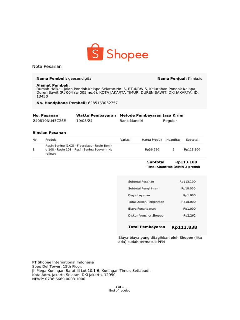 Contoh Inv 1 | PDF