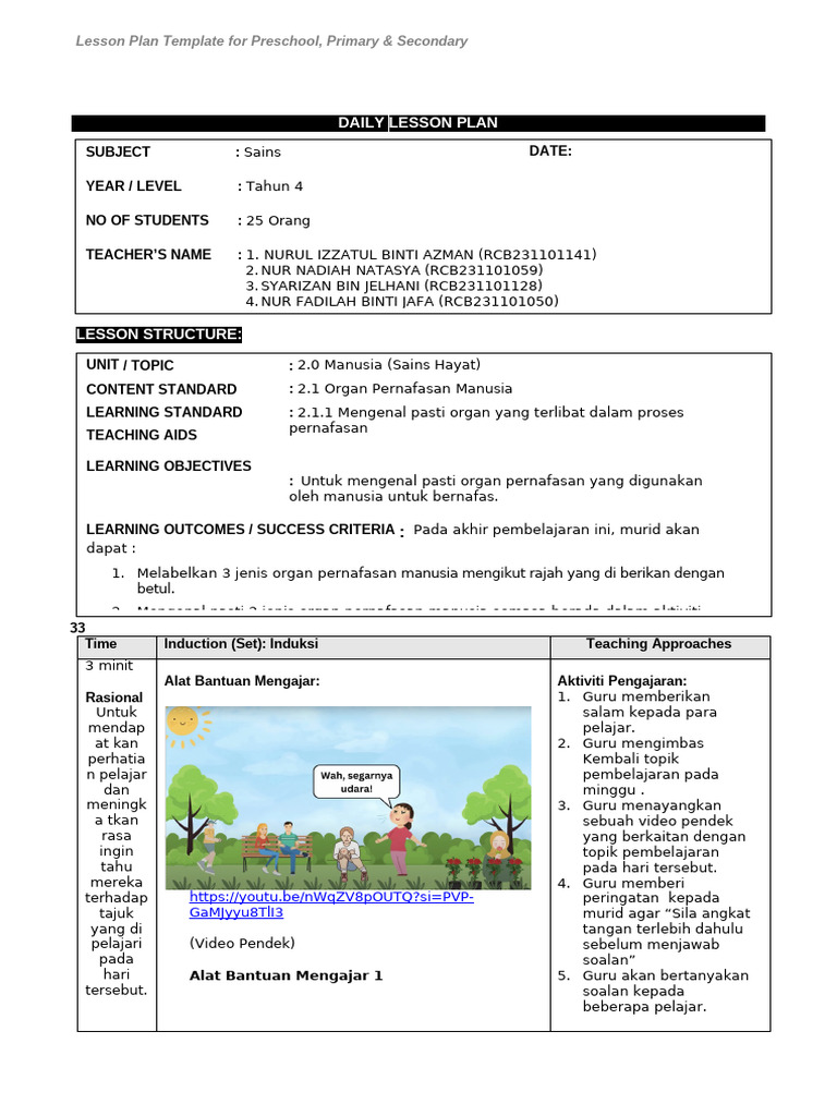 Contoh Lesson Plan Untuk Tadika - JaylinrtAlexander