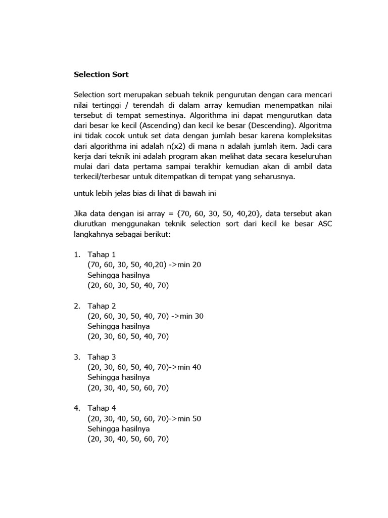 Pengertian dan Contoh Selection Sort | PDF