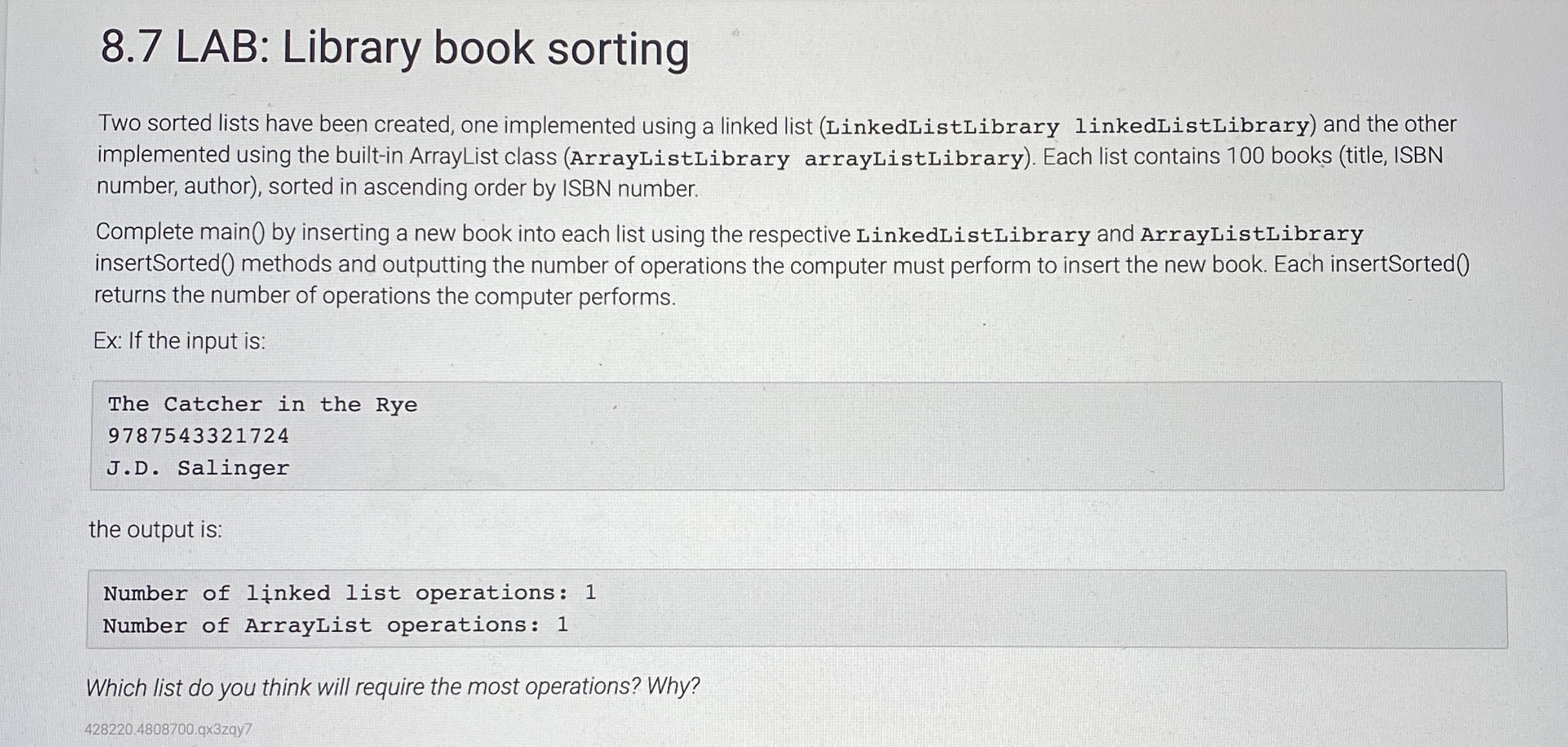 8.7 LAB: Library book sortingTwo sorted lists have | Chegg.com