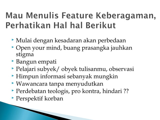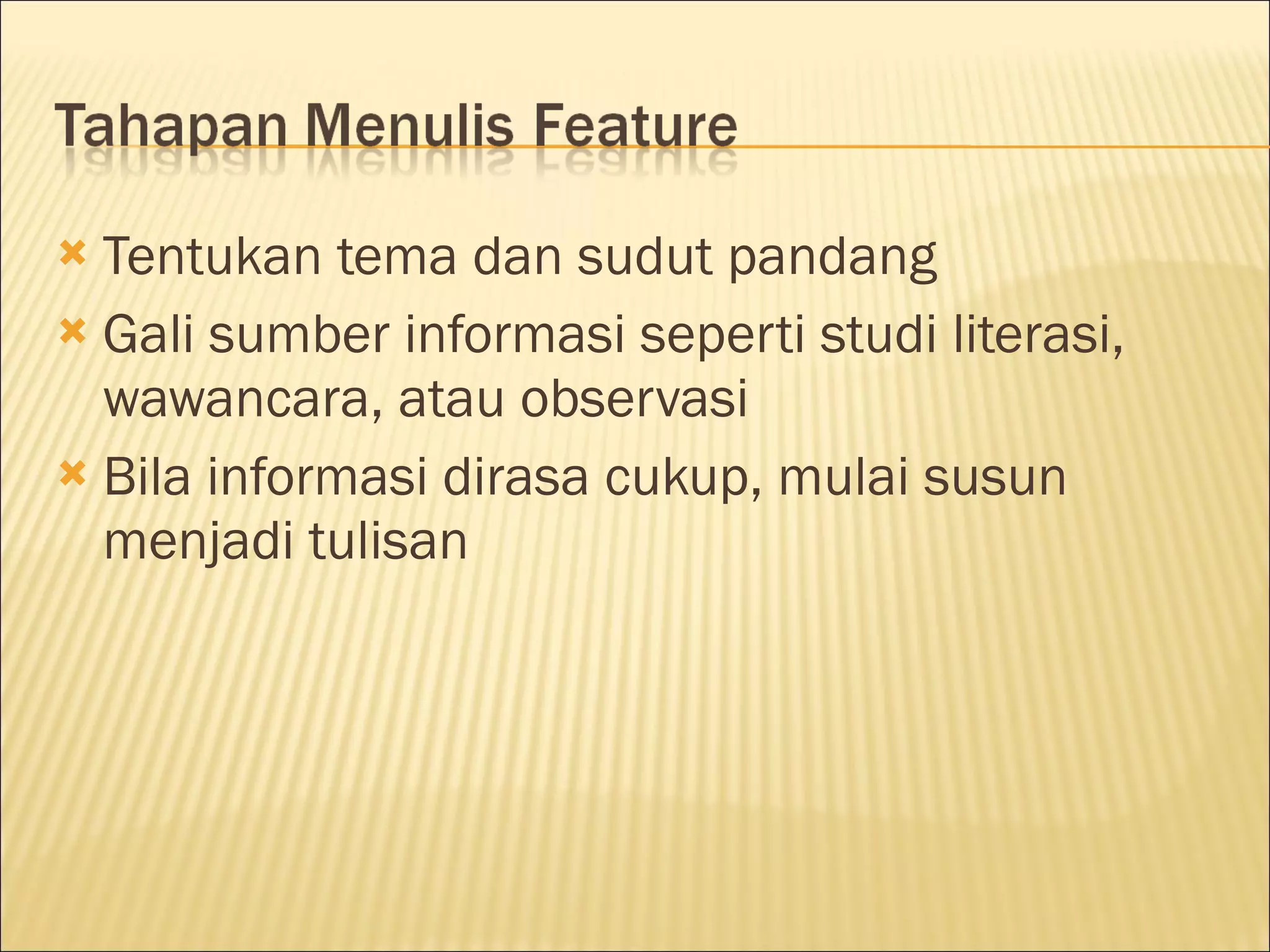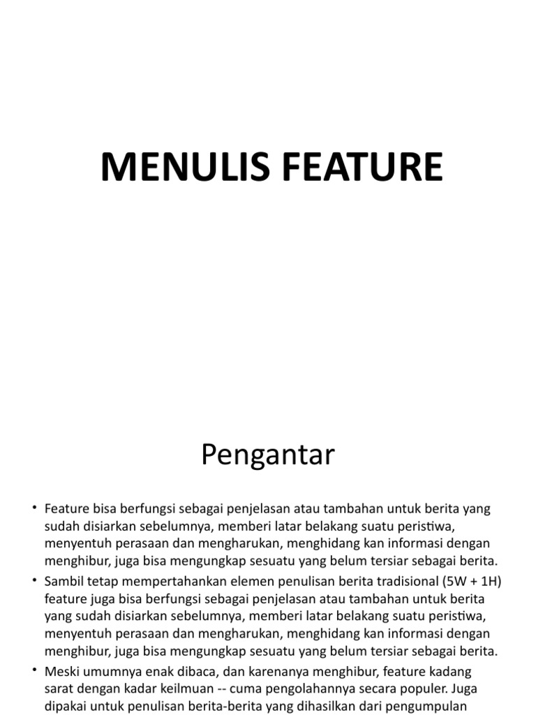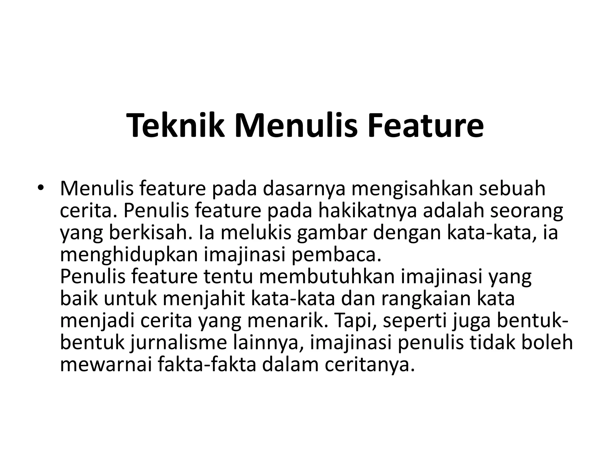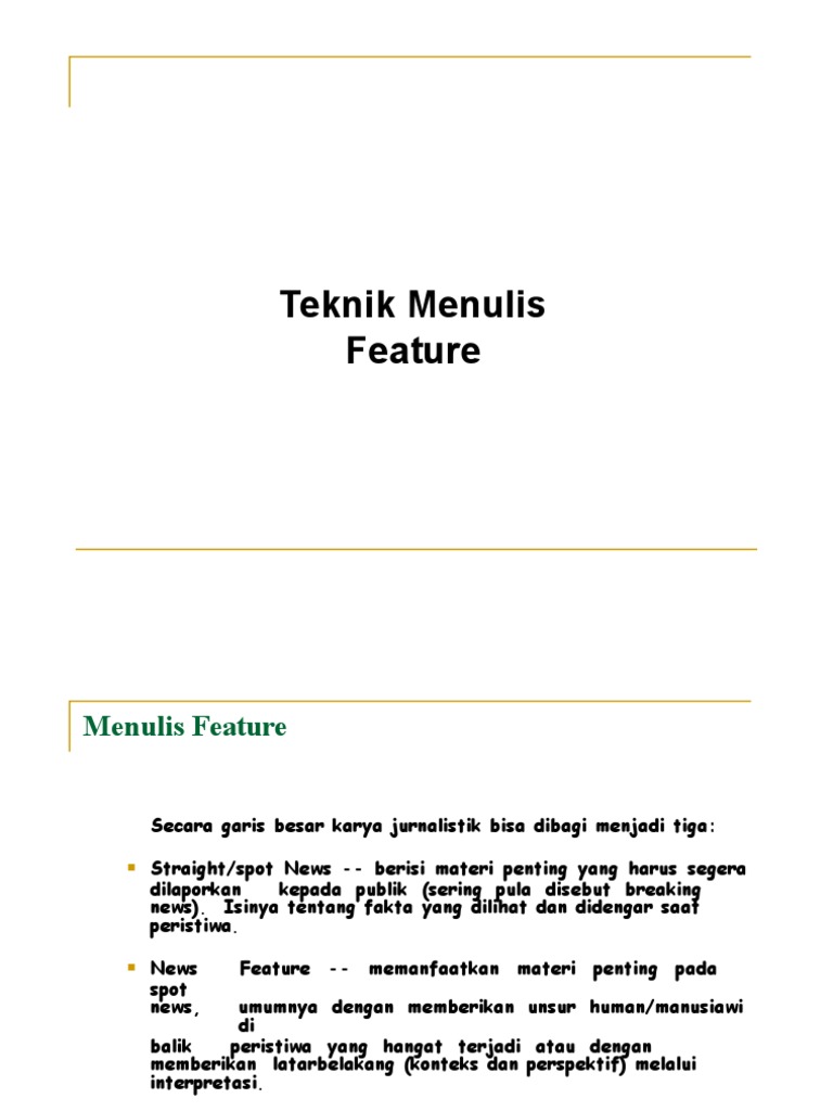 Belajar menulis dengan Teknik Menulis Features | PPT