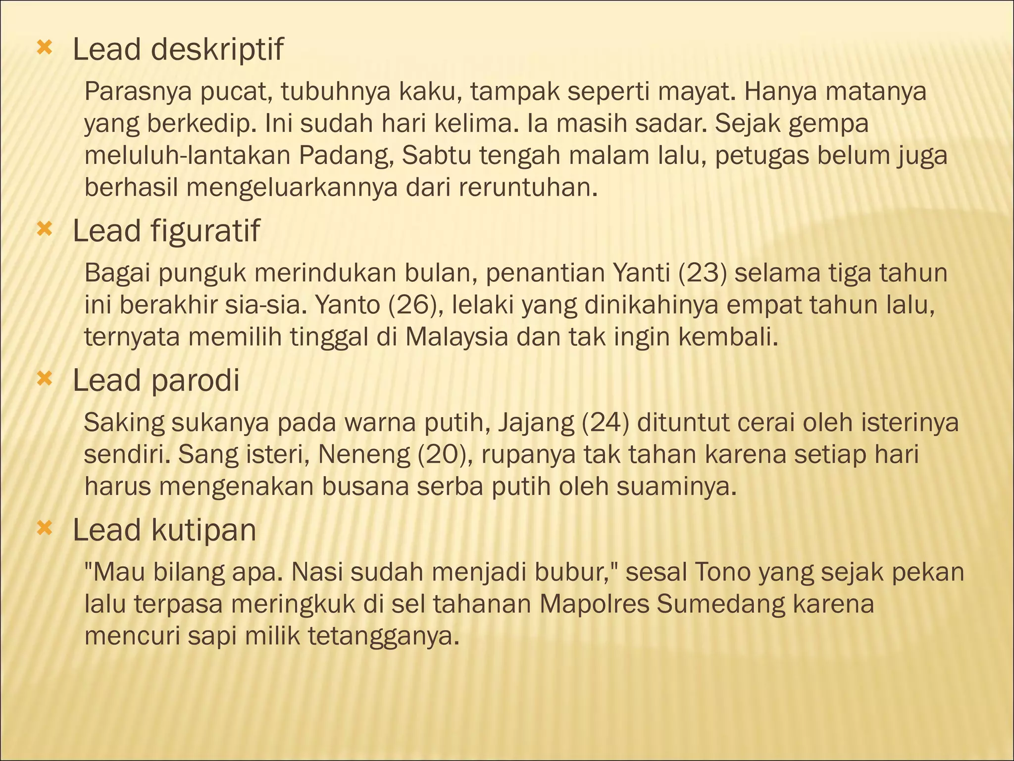Teknik Menulis Feature: Contoh Lead Feature » Romeltea Online