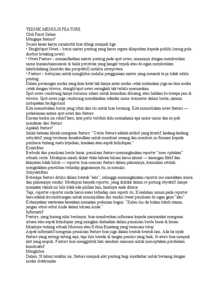 Teknik Menulis Feature yang Efektif | PDF | Karier & Perkembangan ...