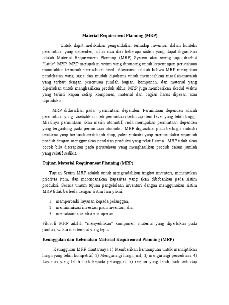SOLUTION: Contoh mrp - Studypool