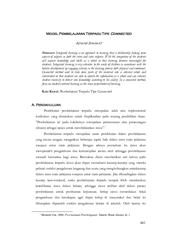 (PDF) Model Pembelajaran Terpadu Tipe Connected