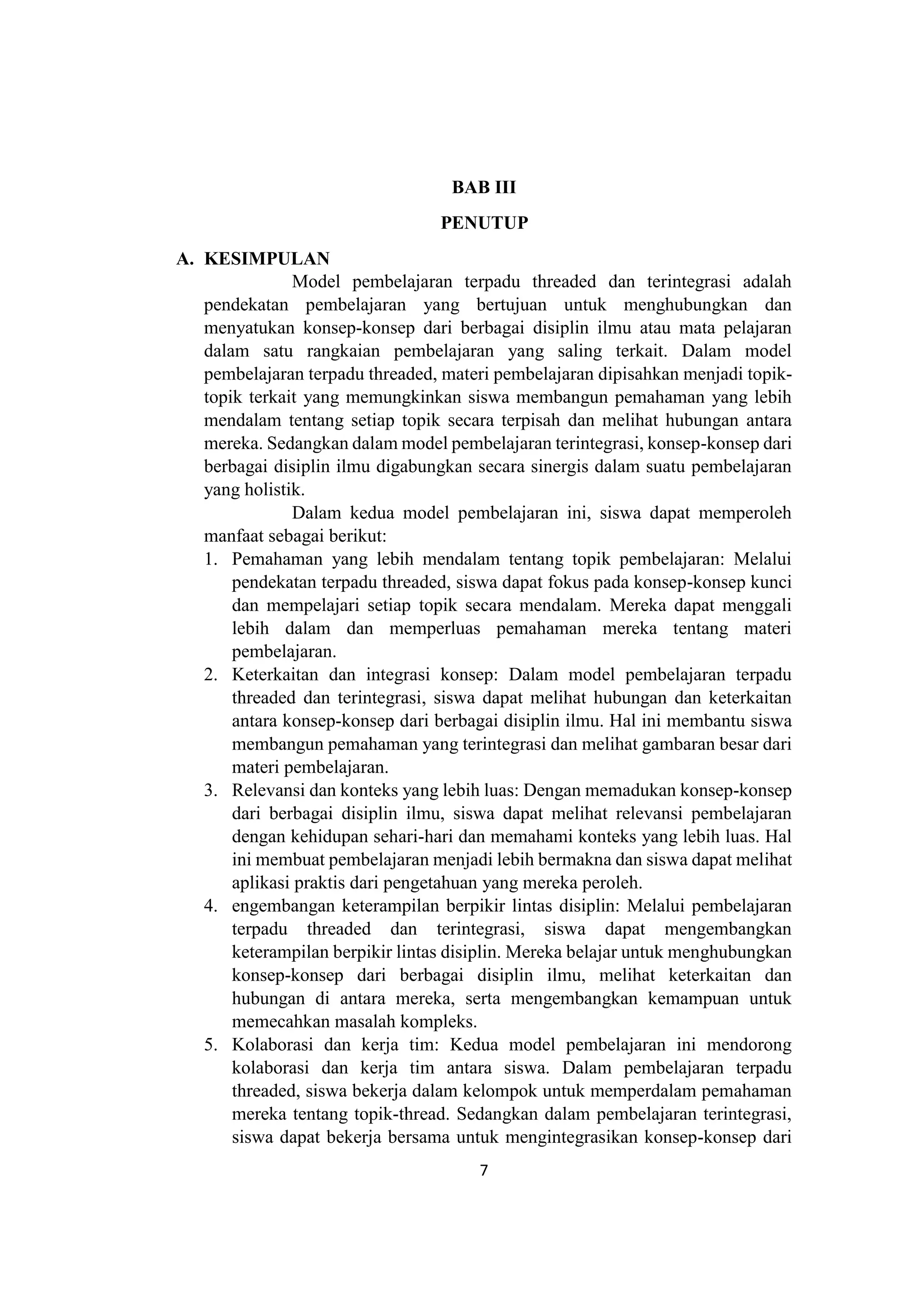 Makalah Pembelajaran Terpadu Model Threaded (KELOMPOK 7) | PDF