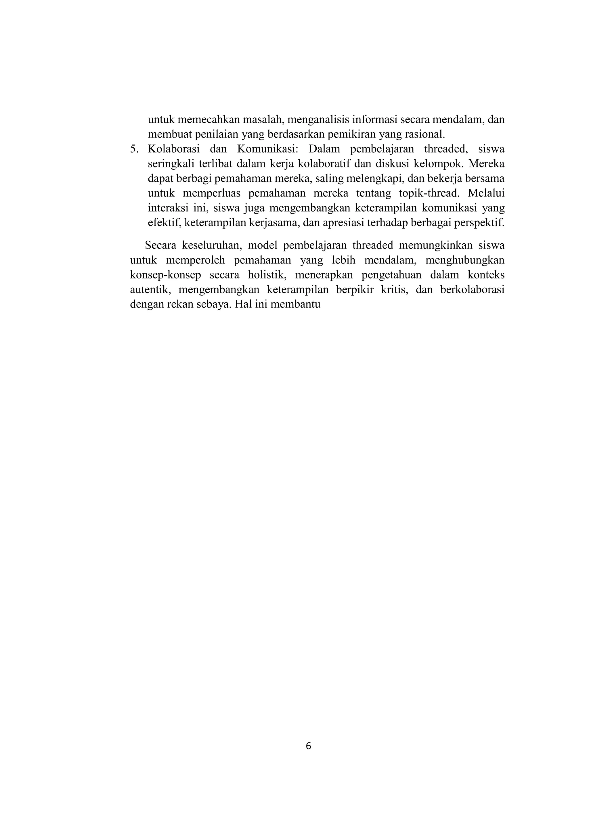 Model Pembelajaran Terpadu Threaded | PDF | Karier & Perkembangan