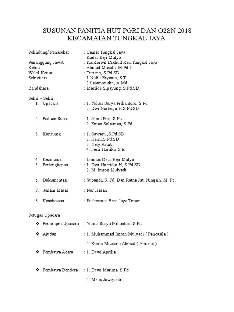 Susunan Panitia Hut Pgri Dan O2sn 2018 Ok | PDF