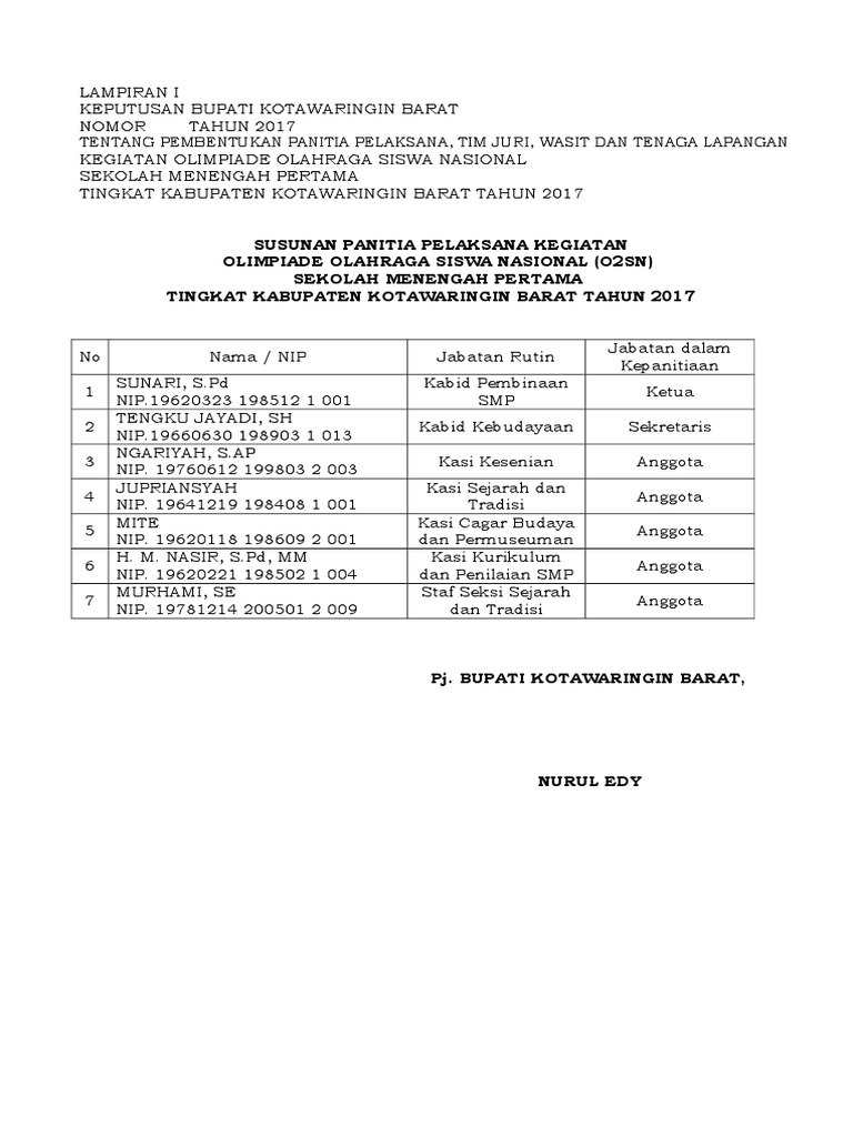 Lampiran SK Panitia O2SN SMP | PDF