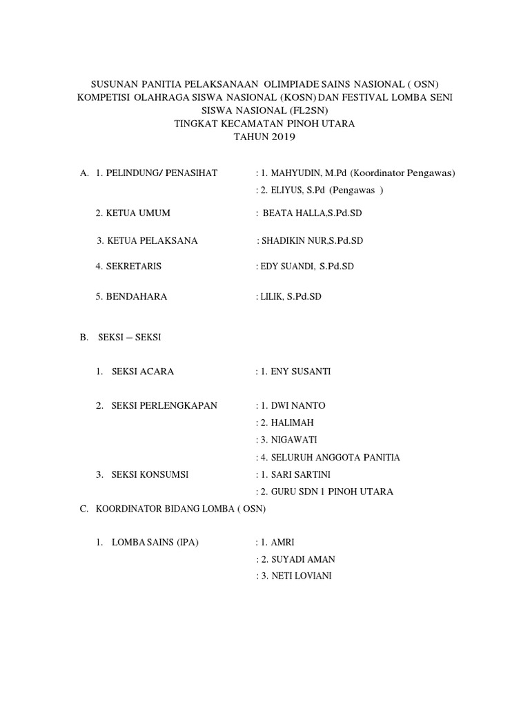Panitia Osn, Kosn Dan FL2SN | PDF