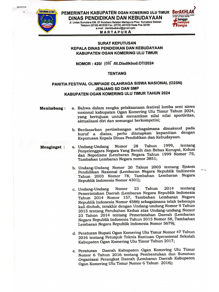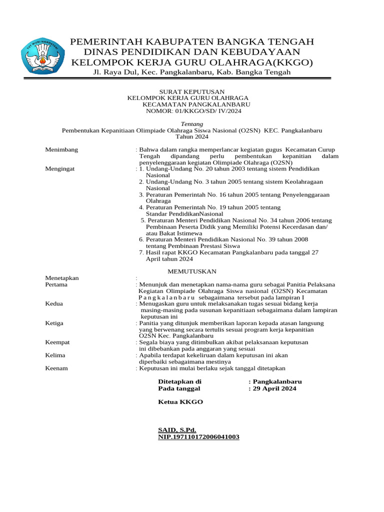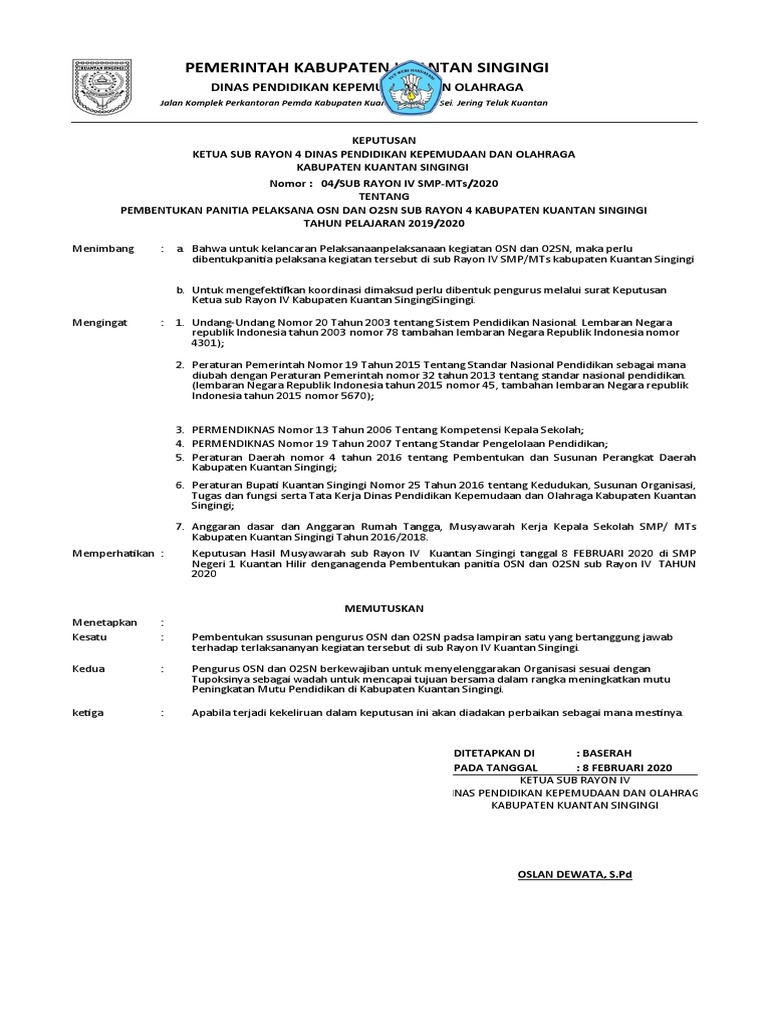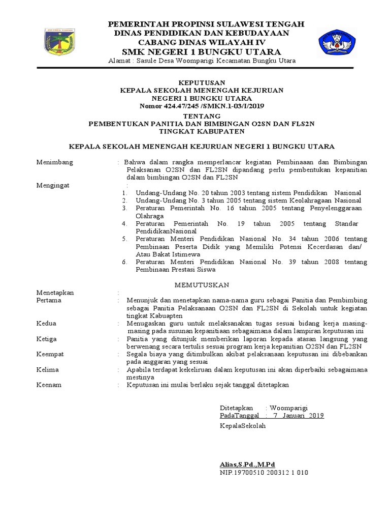 Contoh Surat Keputusan Kegiatan O2SN - Biologizone