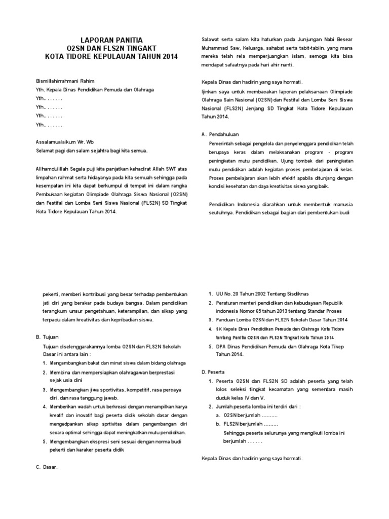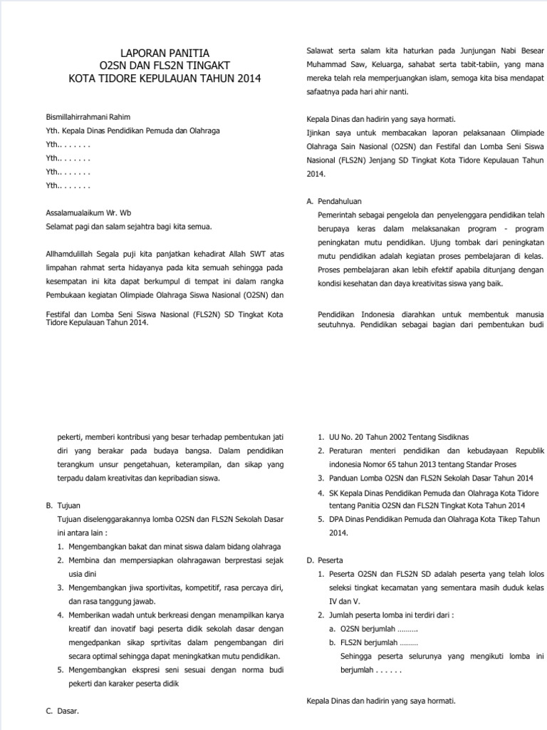 Contoh Laporan Kegiatan O2SN Dan FLS2N | PDF