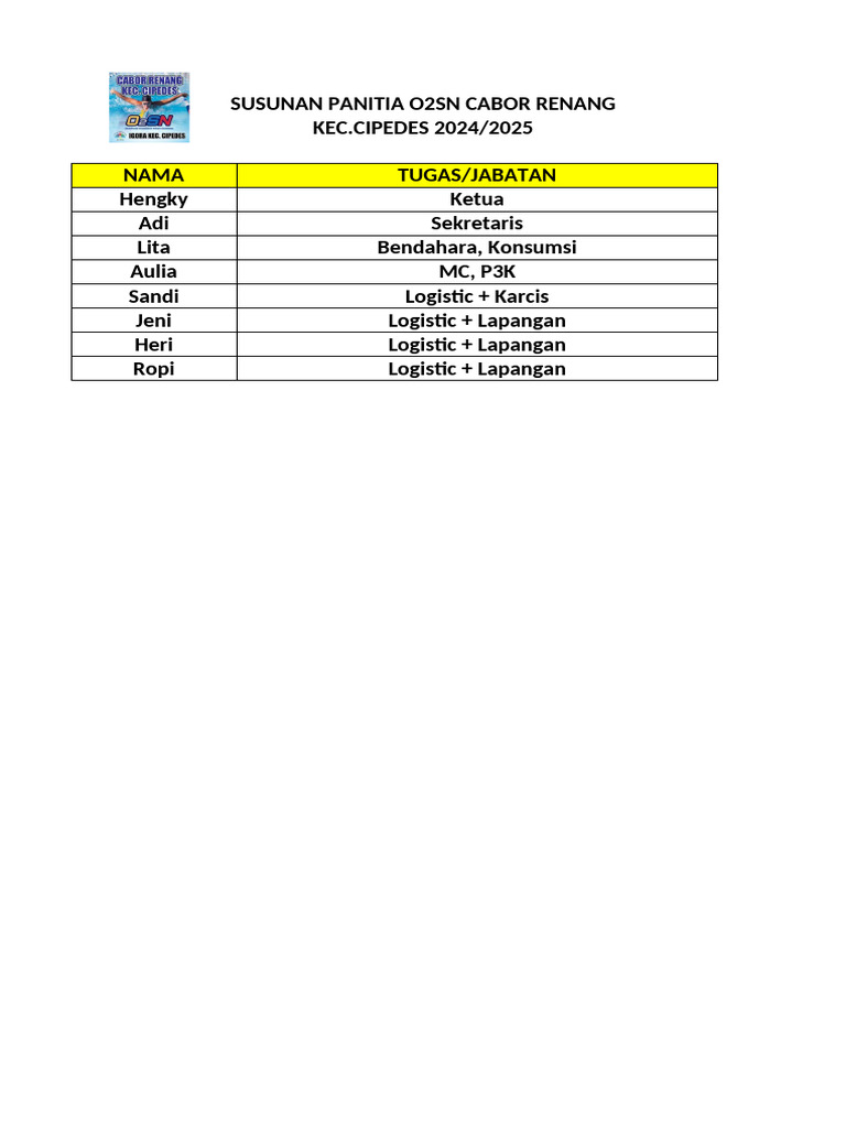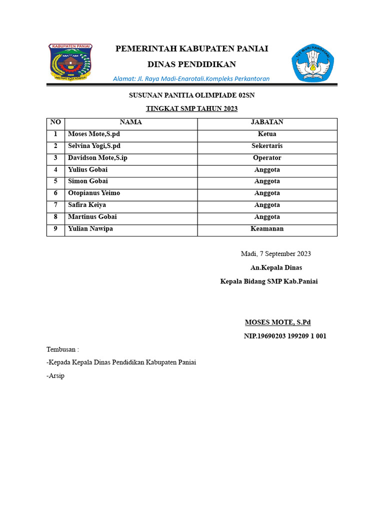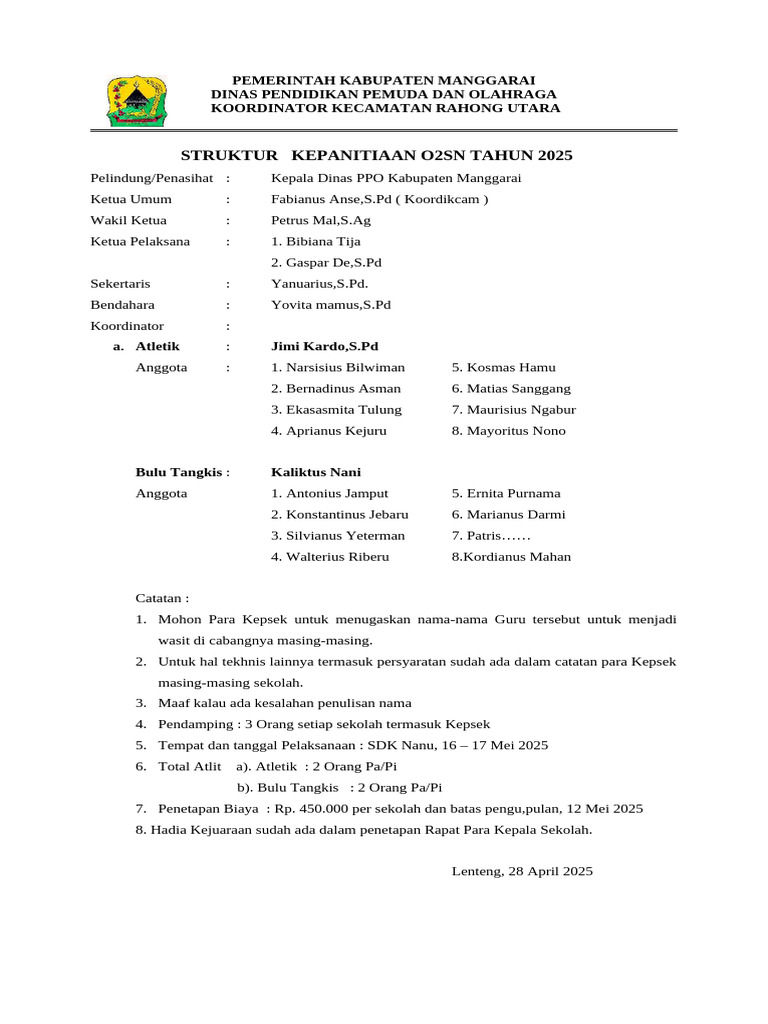 Panitia O2sn 2024 Oke | PDF