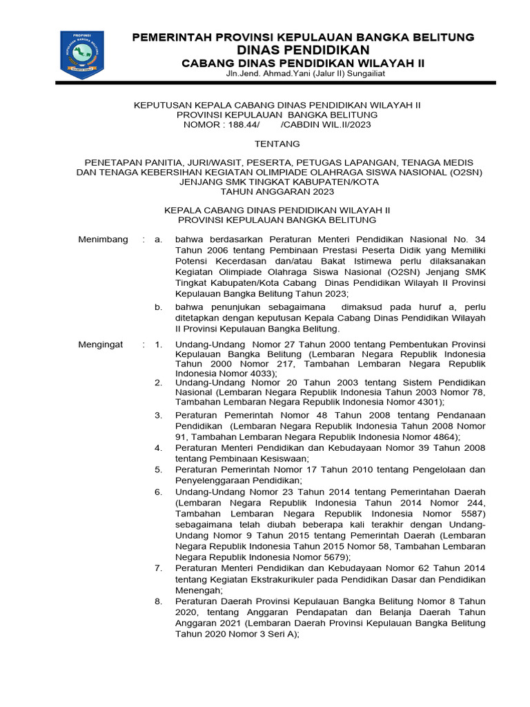 Penetapan Panitia O2SN SMK 2023 Bangka Belitung | PDF