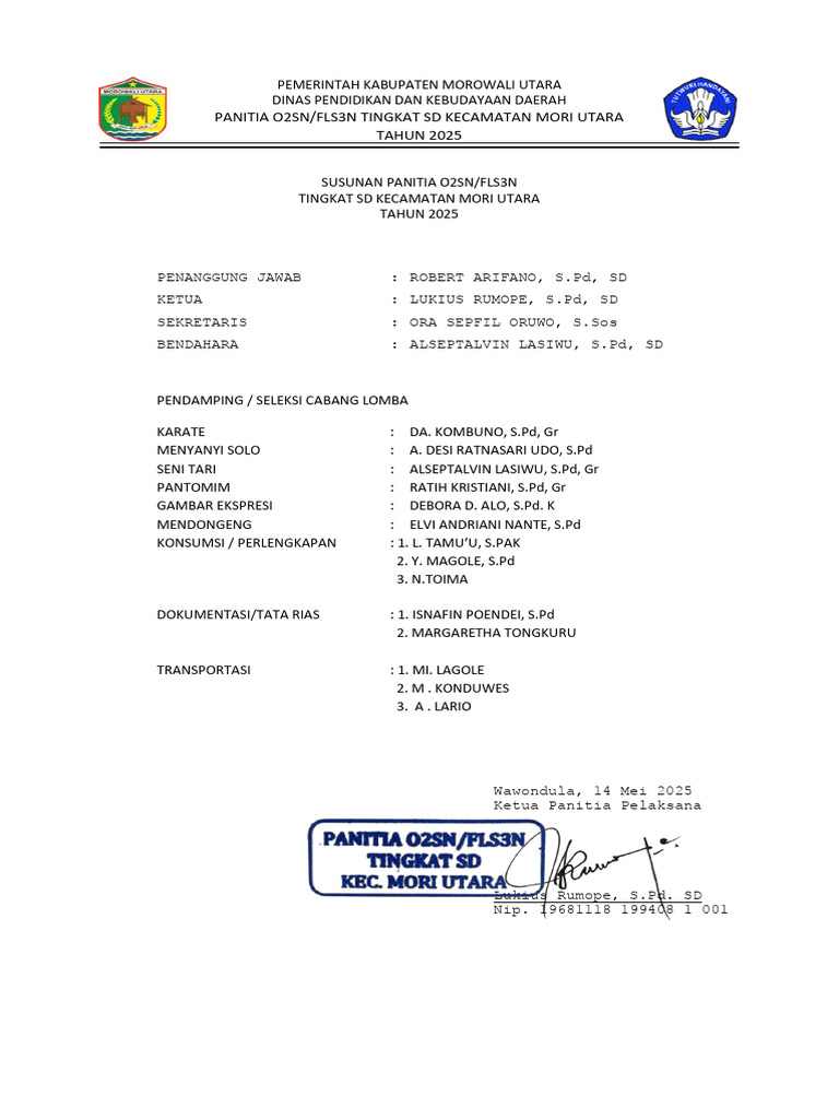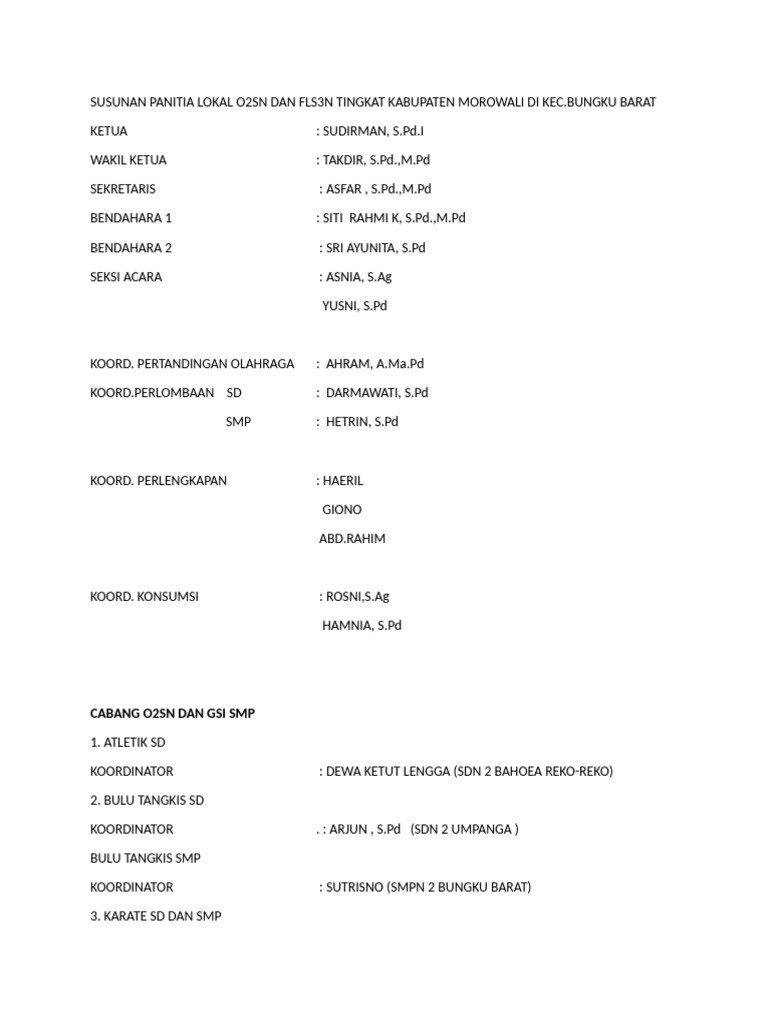 SUSUNAN PANITIA LOKAL O2SN DAN FLS3N TINGKAT KABUPATEN MOROWALI | PDF