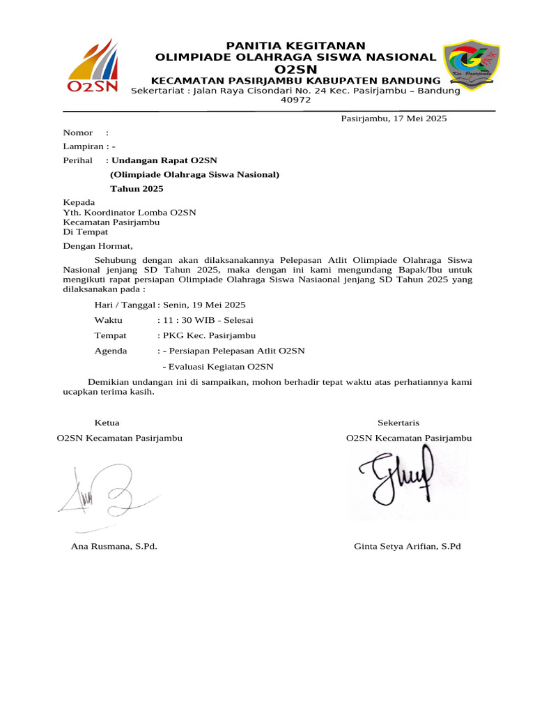 CONTOH Surat Undangan O2SN 2023 | PDF