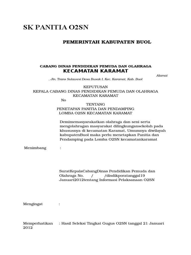 SK Panitia O2sn Kec. | PDF