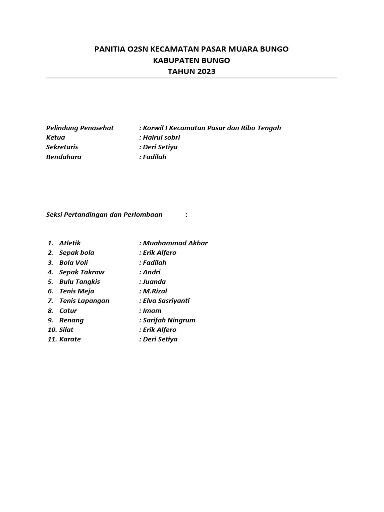 Panitia O2sn Kecamatan Pasar Muara Bungo Tahun 2023 | PDF