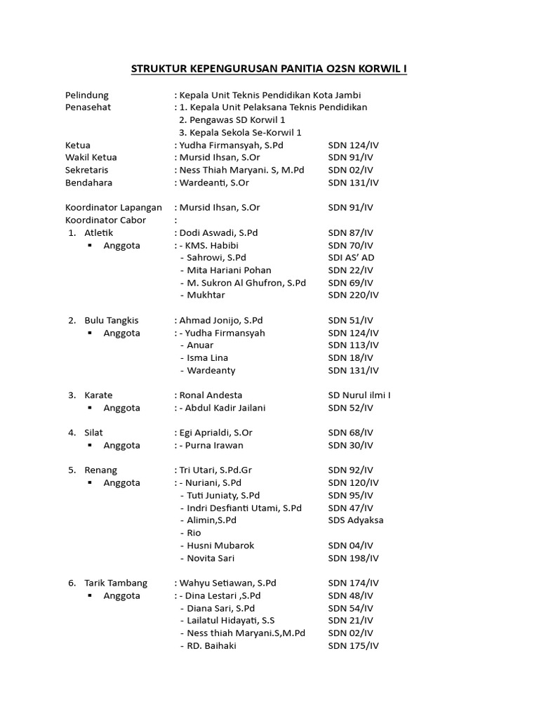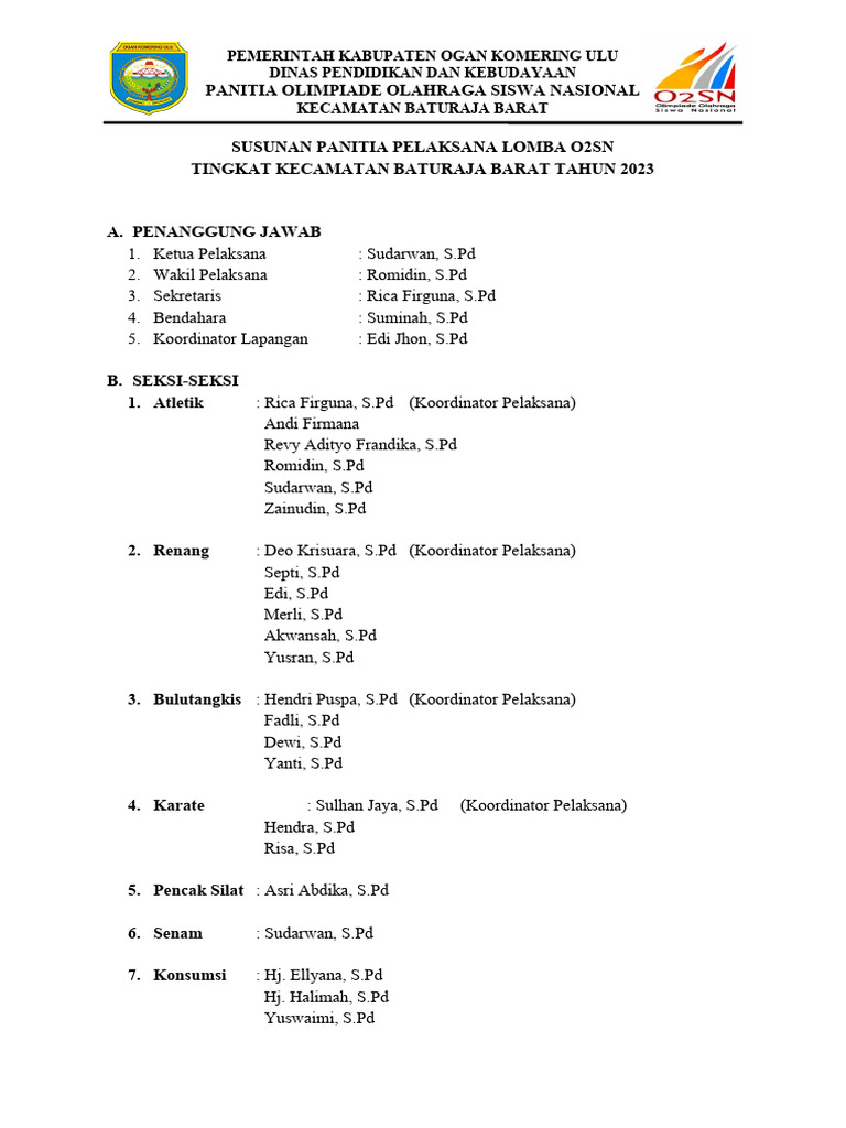 Susunan Panitia O2sn Baru | PDF