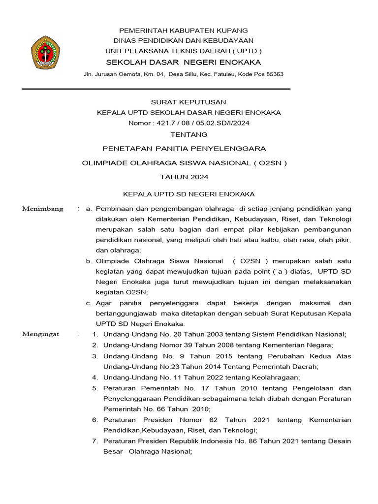 SK Penetapan Panitia O2SN 2024 | PDF