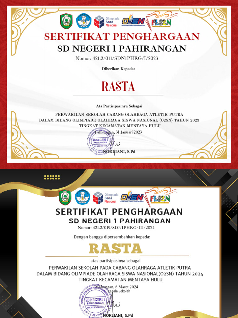 Sertifikat Penghargaan O2SN | PDF