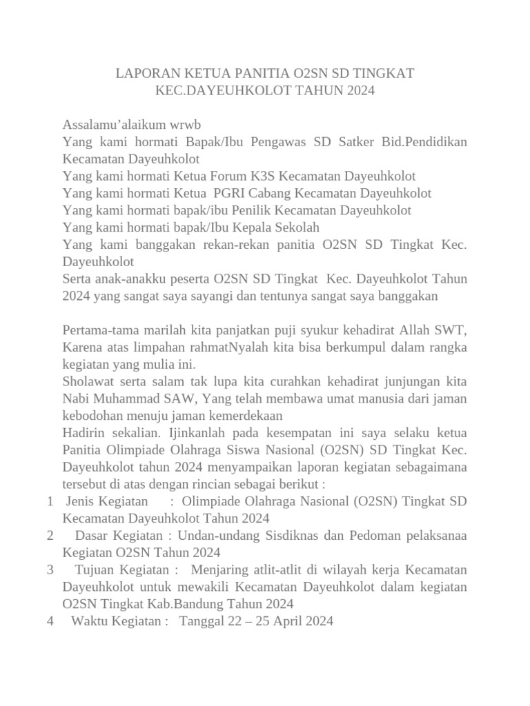 Laporan Ketua Panitia O2sn SD Tingkat Ke2 | PDF