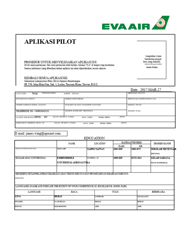 1-2. Formulir Aplikasi Pilot EVA Air - Contoh | PDF
